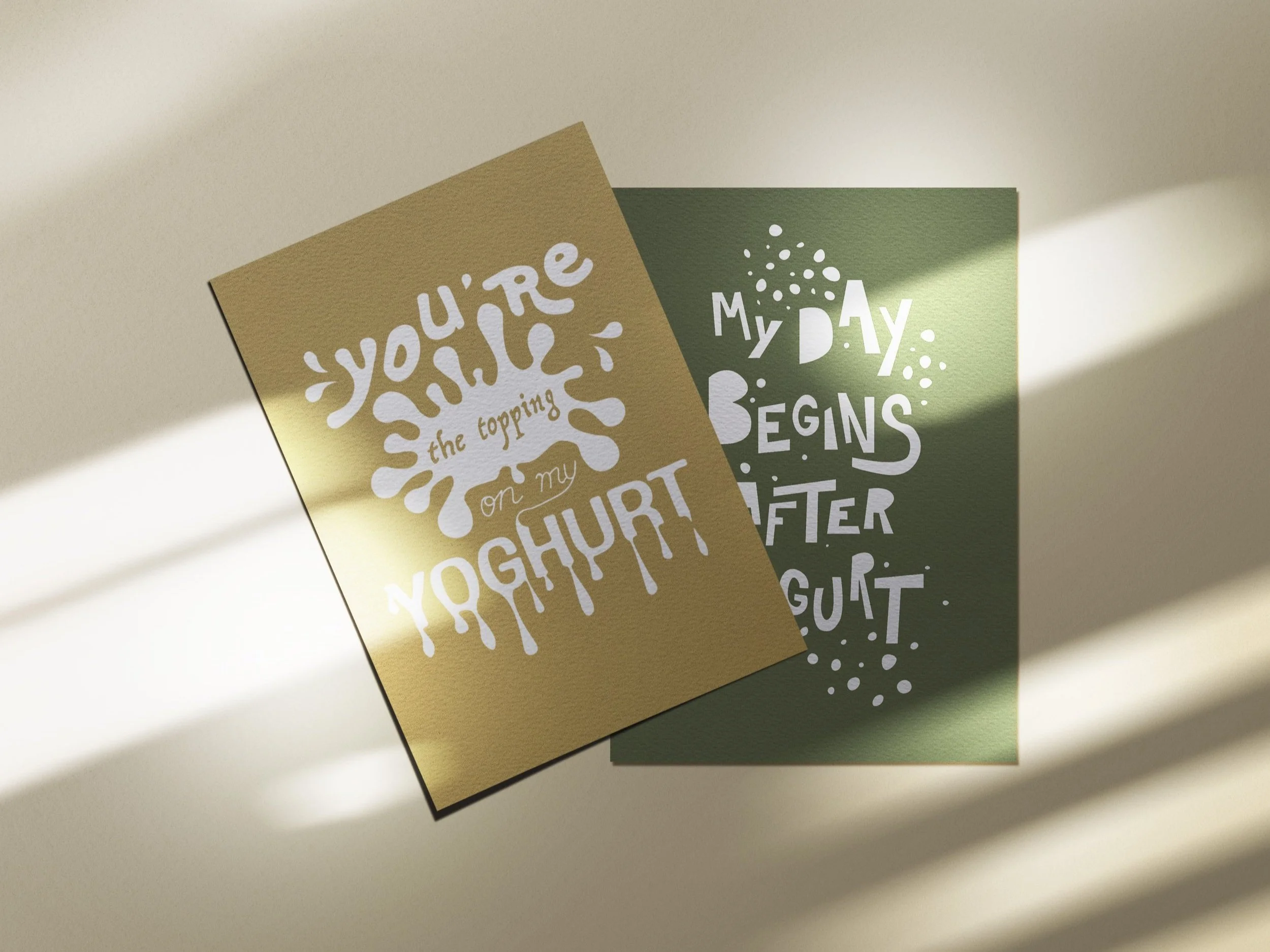 Graphic quote designs for the Yoghurt Barn postcards, to give with a purchase or gift.